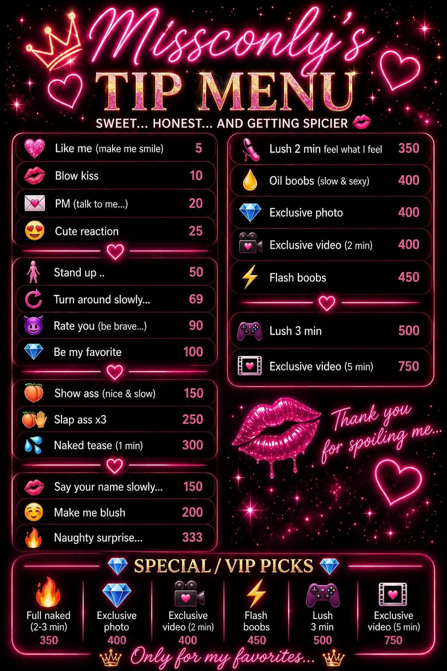 Dildo o Vibratore, Topless, Ripresa della gonna da sotto, Fumo, Giocattoli erotici, Sborrata, Orgasmo, Squirt, Ditalino, Sborrata in faccia, Masturbazione, Spettacolo con olio, Creampie, Facesitting, Valutazione del cazzo, Ingoio, Tittyfuck